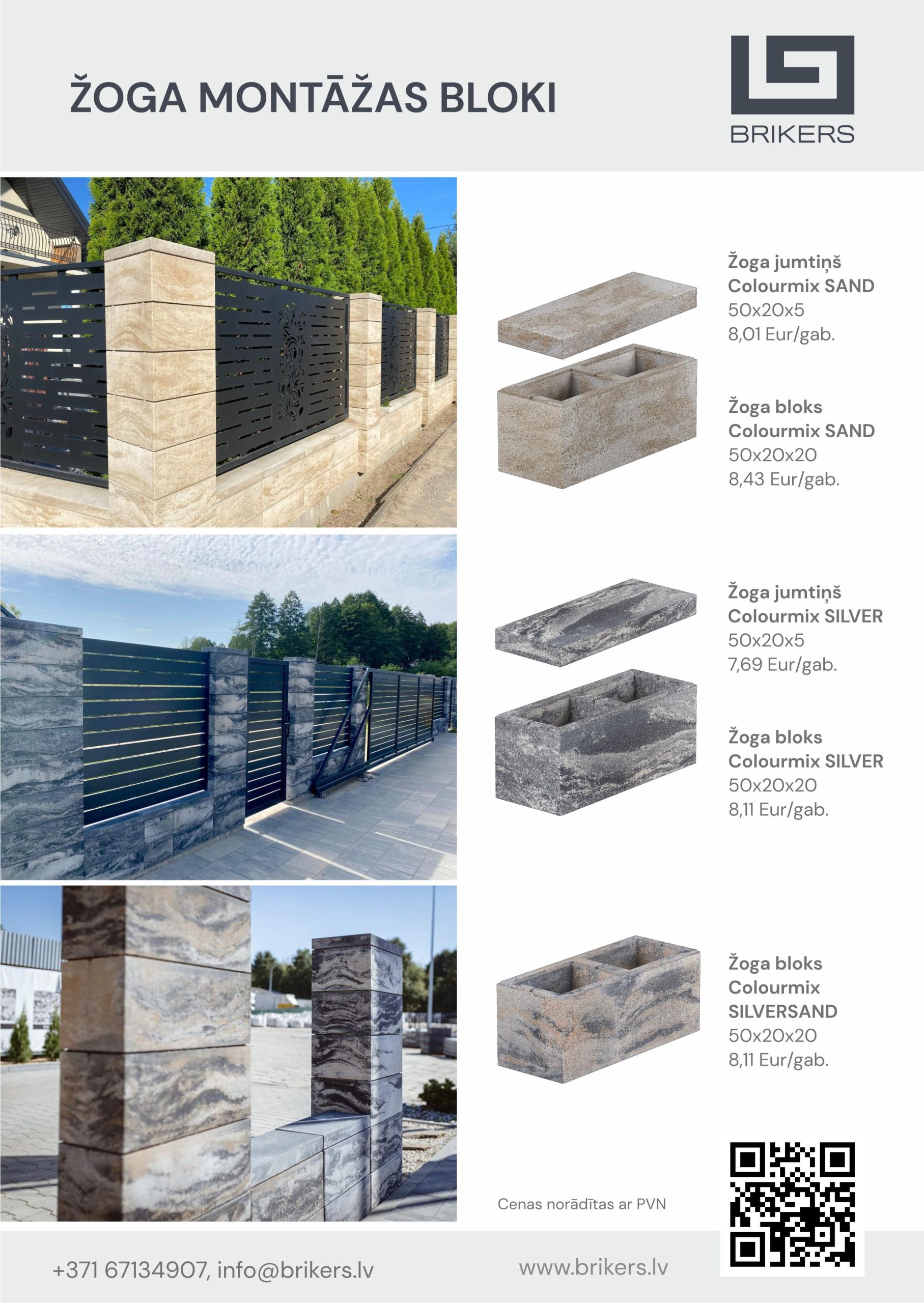 Papildinām Brikers piedāvājumu ar augstas kvalitātes žoga montāžas blokiem. Pieejami dažādās krāsās un colourmix versijā, kas ļauj pielāgot žoga dizainu un estētiku atbilstoši katra klienta vēlmēm. Moduļu sistēma ļauj ātri un vienkārši uzstādīt žogu, samazinot darba apjomu un izmaksas. Betona moduļi ir izturīgi pret bojājumiem un laika apstākļiem tie ir ilgmūžīgi un neprasīs īpsašu kopšanu.