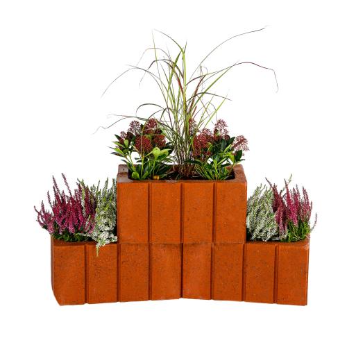 Flora dārza bloki pilda betona, tātad, ilgmūžīgu puķupodu funkcijas, tie, pildīti ar zemi, ir pamatīgs nostiprinājums gruntij. No tiem var veidot arī vertikālu puķu sienu. Pieejami krāsaini, pusmēness formā un kantaini. Kombinācijā ar Rondo stabiņiem, dārza dizains būs personīgs un oriģināls.