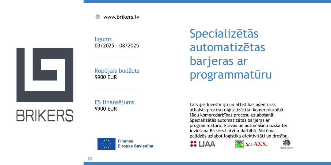 Sadarbībā ar Latvijas Investīciju un attīstības aģentūru Brikers Latvija 2025.gadā ir ieviesis specializētas automatizētas barjeras ar programmatūru uzstādīšanu kravas automašīnu uzskaitei rūpnīcā Dobelē. Projektu bija iespējams īstenot programmas atbalsts procesu digitalizācijai uzņēmējdarbībā ietvaros.